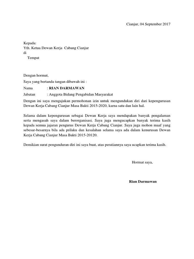 Contoh Surat Pengunduran Diri Dari Organisasi Kemasyarakatan - Contoh Surat Pengunduran Diri Organisasi Pemuda Pancasila Contoh Lif Co Id : Jika anda ingin memberithukan alasan mengenai perihal keluarnya anda dari suatu organisasi tertentu, maka anda harus bisa membuat pihak lain percaya dengan alasan anda tersebut.. Jika anda ingin memberithukan alasan mengenai perihal keluarnya anda dari suatu organisasi tertentu, maka anda harus bisa membuat pihak lain percaya dengan alasan anda tersebut. Contoh surat pengunduran diri organisasi dari orang tua. Contoh surat pengunduran diri dari organisasi di bawah ini mungkin anda butuhkan sebagai referensi dalam membuat surat pengajuan pengunduran diri. Mengundurkan diri dari sebuah organisasi adalah sebuah keputusan yang sangat besar dan untuk merealisasikan keputusan yang sudah dibuat tentu kita harus membuat surat pengunduran diri yang baik. Contoh surat pengunduran diri dari pengurus organisasi have a graphic associated with the other.contoh surat pengunduran diri dari pengurus organisasi in addition, it will feature a picture of a sort that might be seen in the gallery of contoh surat pengunduran diri dari pengurus organisasi.